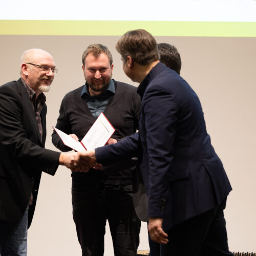 Im folgenden Festvortrag ging Eva von Redecker, Philosophin, Autorin und Publizistin, auf ihre Theorie der Gezeiten des lebendigen Bodens ein. Anschließend wurden die weiteren Auszeichnungen vergeben. Zum ersten Mal ist die BDA-Auszeichnung für Baukultur mit einer konkreten Investition in die Zukunft verbunden. Mit dem Ankauf von Genossenschaftsanteilen im Namen der Ausgezeichneten unterstützt der BDA Hessen die Genossenschaft BioBoden. Jasper Holler, Vorstand der Genossenschaft, erläuterte dem Plenum wie sich BioBoden für eine langfristige Sicherung der wertvollen Ressource Boden einsetzt.