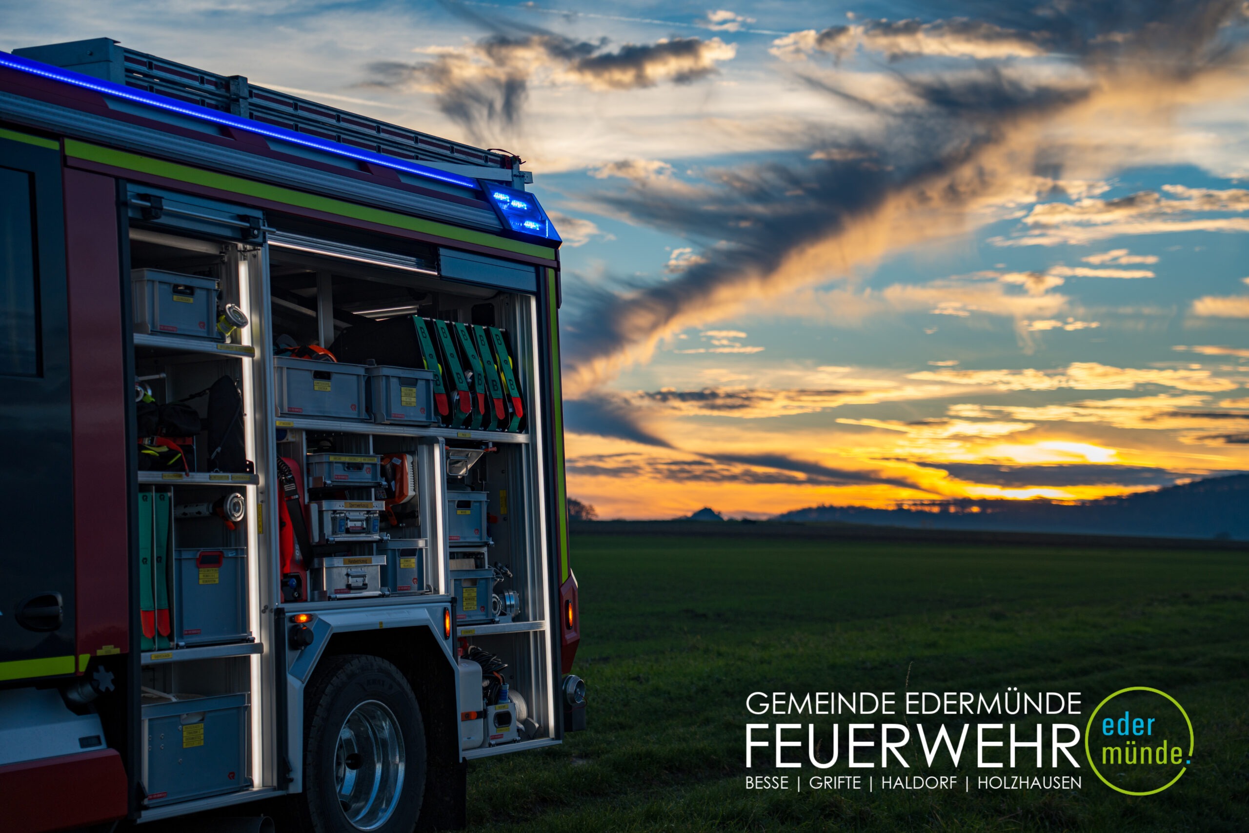 Beladung: Akkulüfter, Modul Wald- und Vegetstionsbrand (Wechselmodul), Modul Wasserschaden (Wechselmodul), Löschdecke Fahrzeugbrand (Wechselmodul), Modul Akkukettensäge, Modul Türöffnung, Stromerzeuger, Akku-Säbelsäge