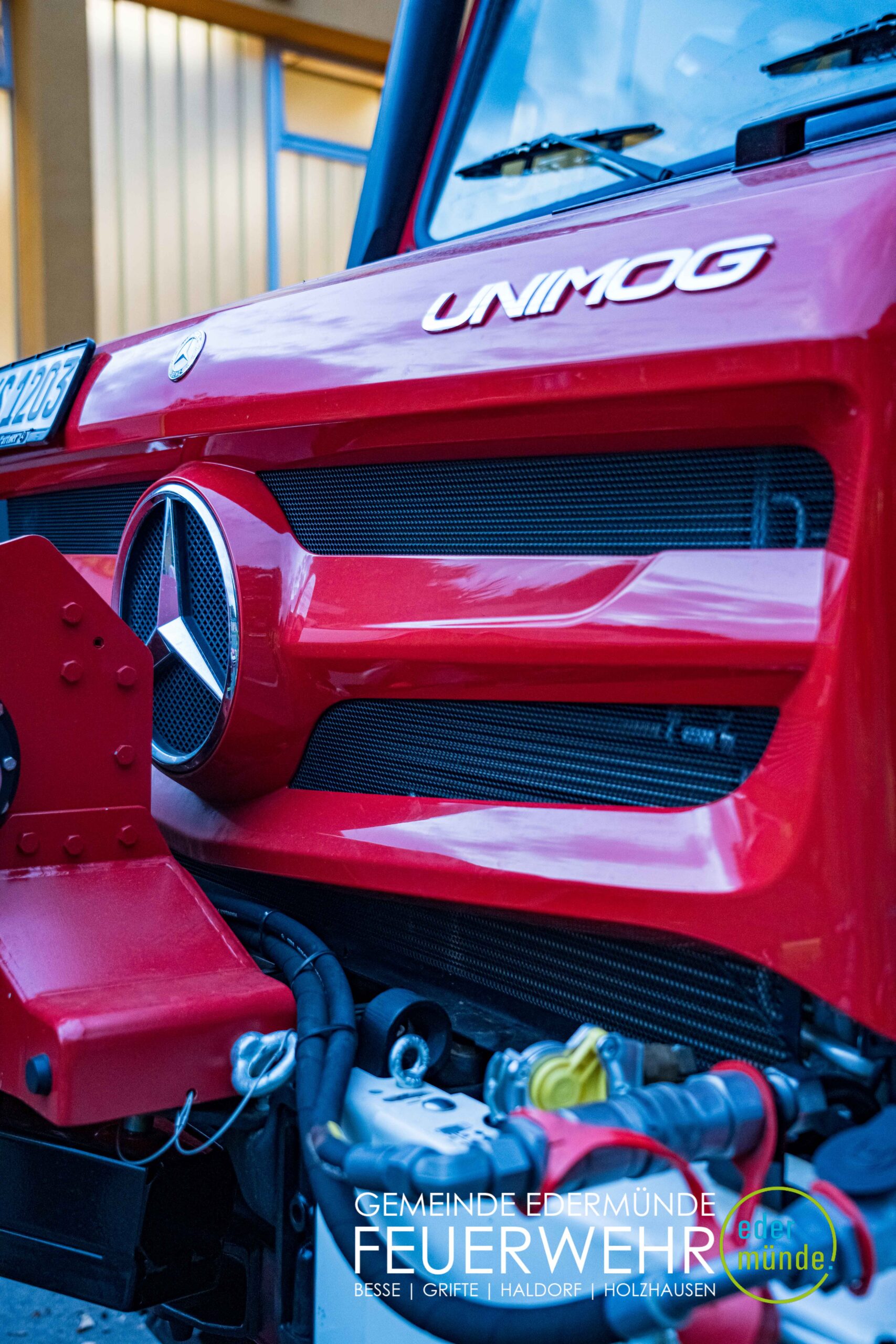 Da wir bei solchen Einsätzen in Edermünde meistens nicht alleine unterwegs sind, kam zusätzlich der Unimog mit dem Waldbrandmodul aus Gudensberg zu uns.