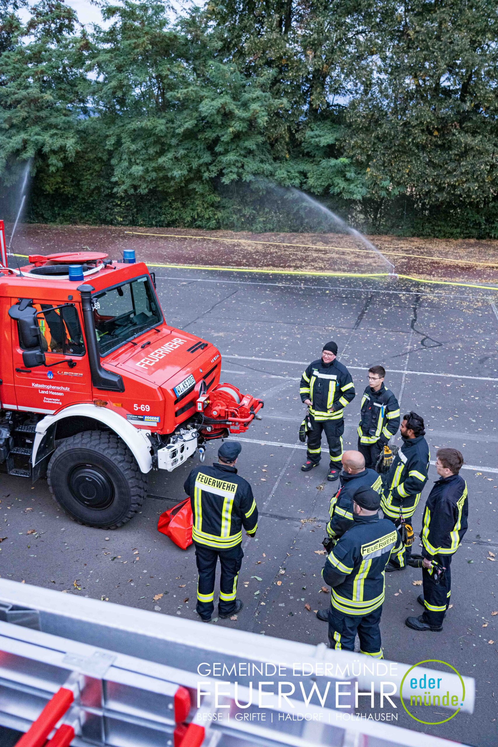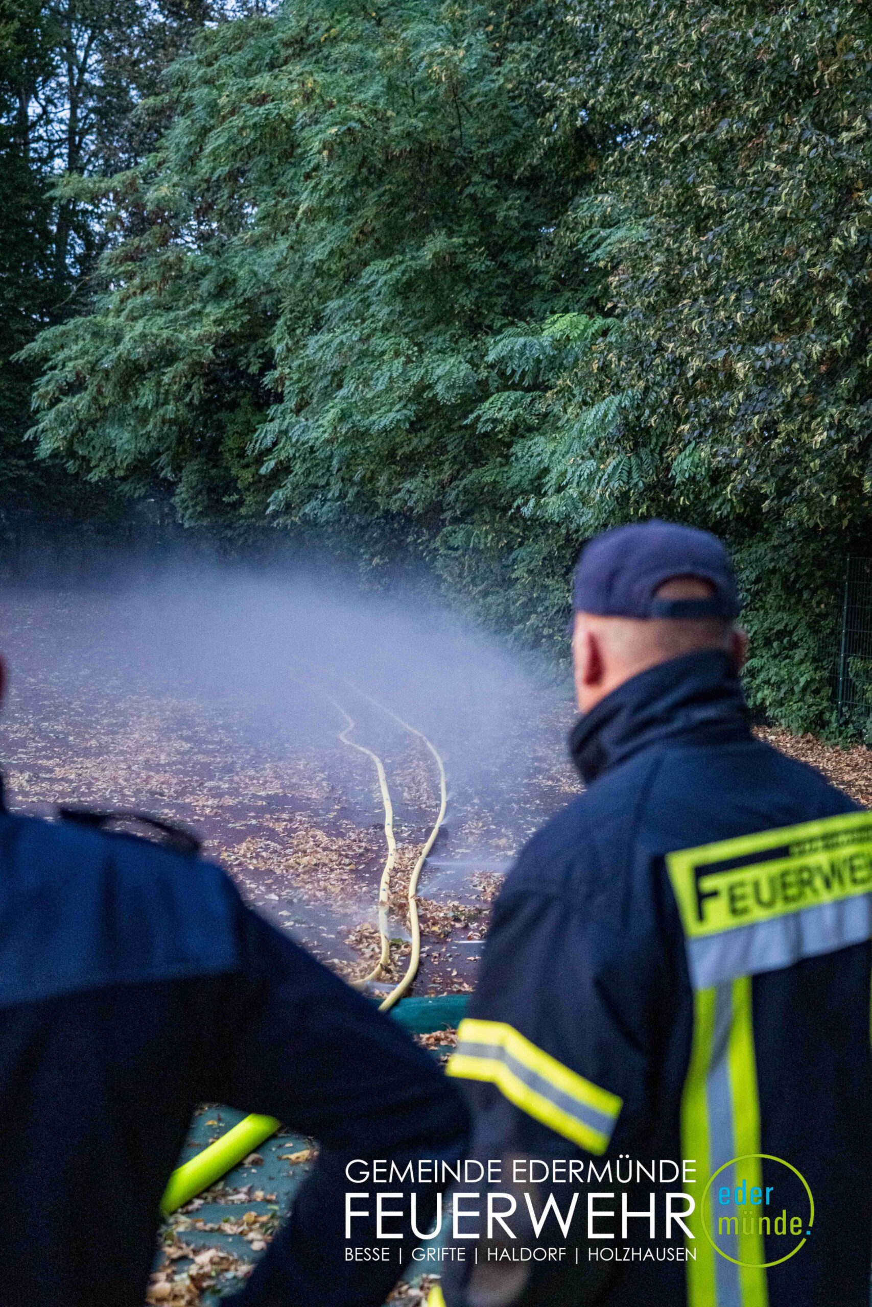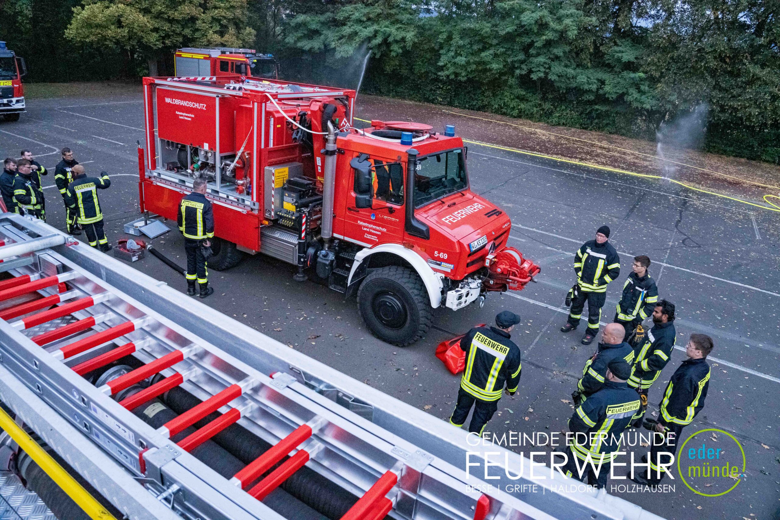 Viermal im Jahr treffen sich alle Ortsteile aus Edermünde, um einen gemeinsamen Übungsdienst durchzuführen. Dieses Mal war der Ortsteil Haldorf mit der Planung an der Reihe. Unter der Leitung von Lukas Möller sollte das Thema der Vegetations- und Waldbrandbekämpfung unter die Lupe genommen werden.