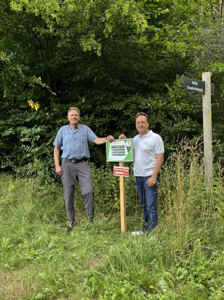 „Der Pop-up-Weg ist eine tolle Gelegenheit, Natur und Wissen auf eine interaktive und unterhaltsame Weise zu verbinden und dabei die schöne Natur rund um Edermünde zu entdecken“, freut sich Thomas Petrich, Bürgermeister aus Edermünde, der zusammen mit Naturpark-Geschäftsführer Jürgen Depenbrock den Weg eröffnete.