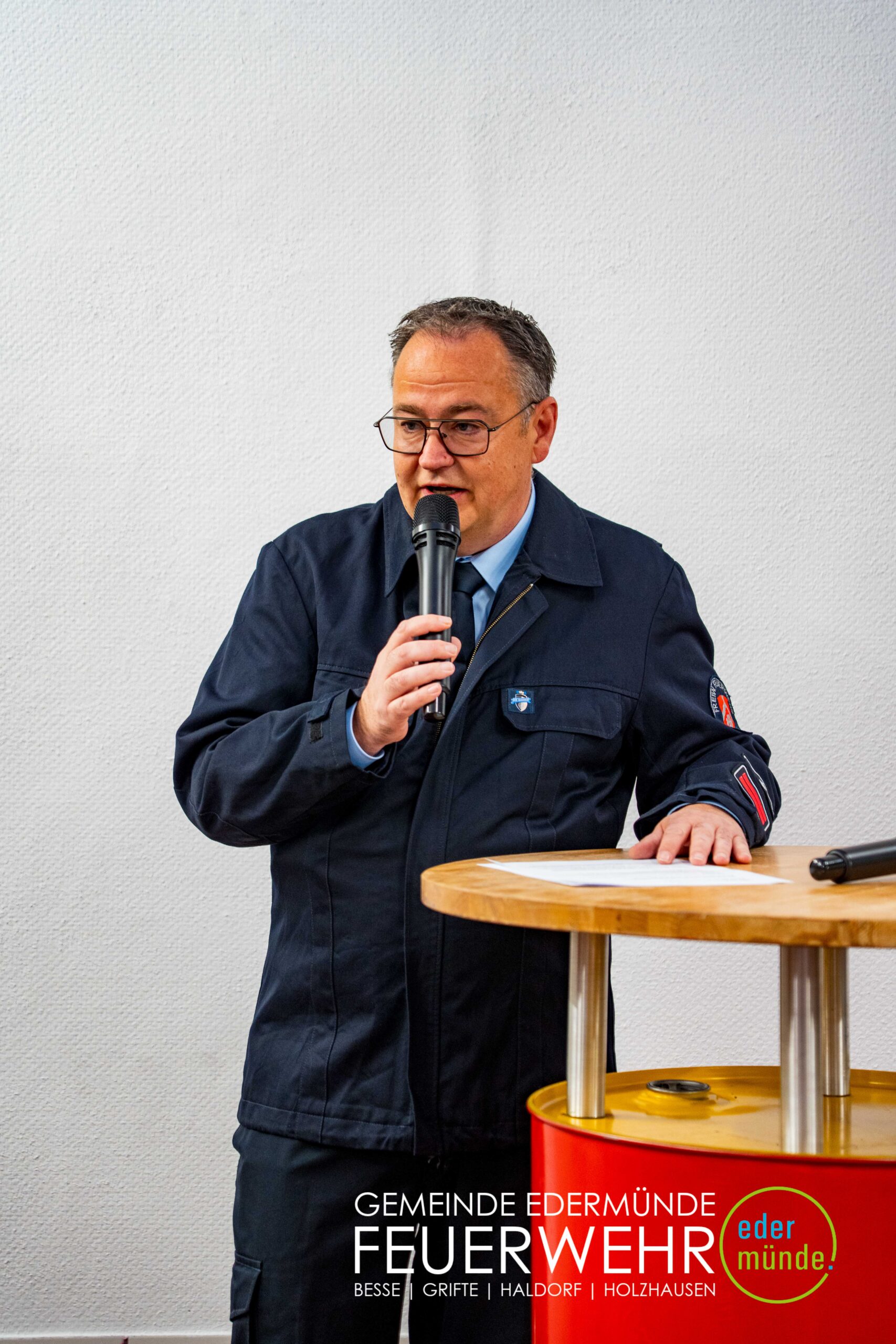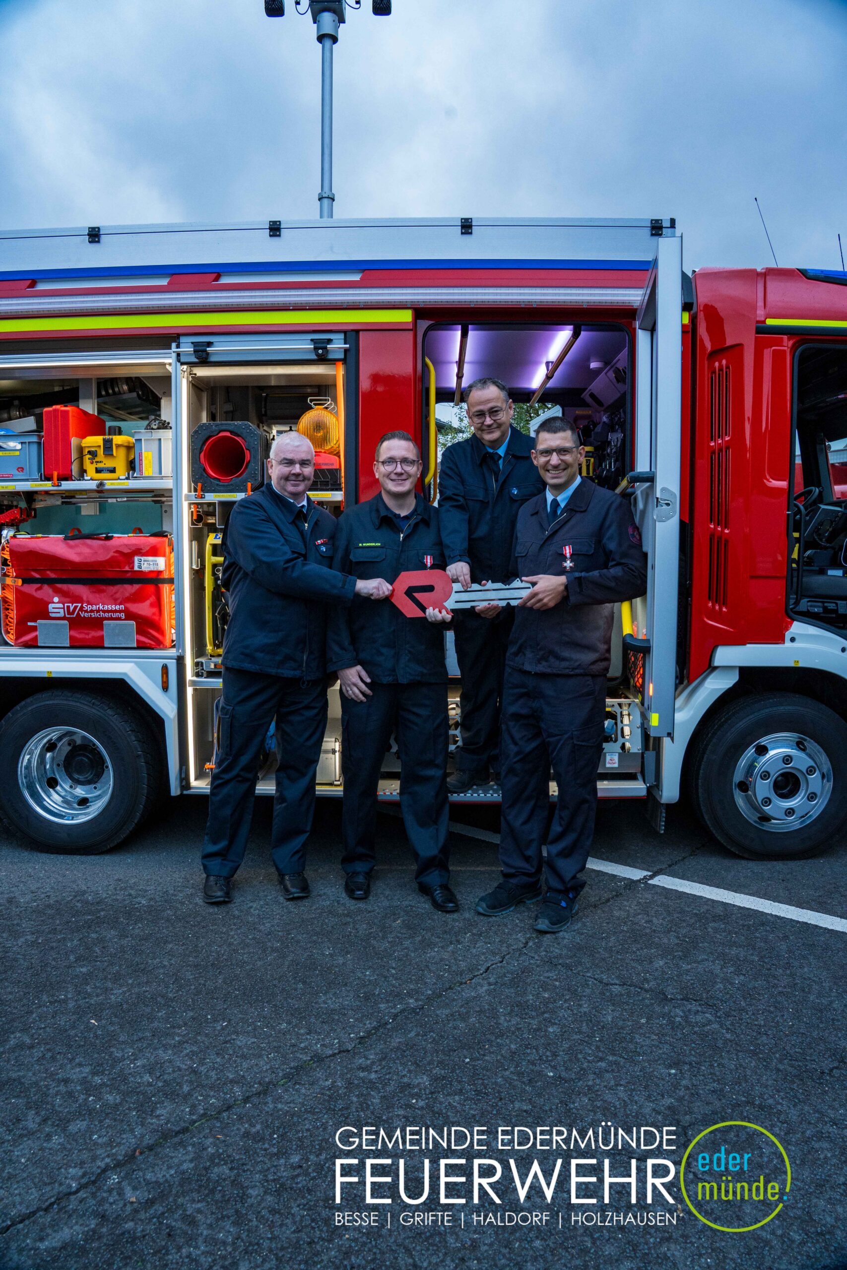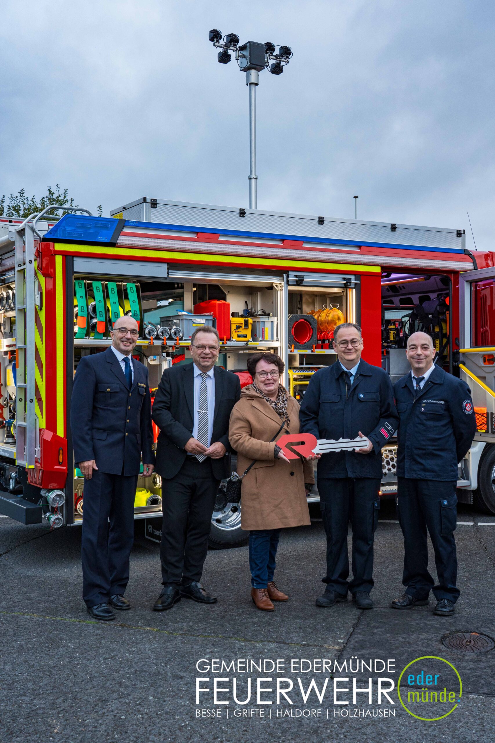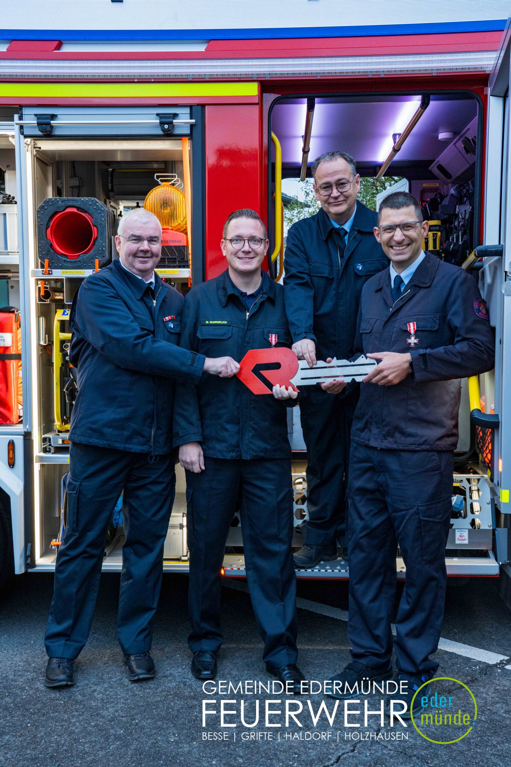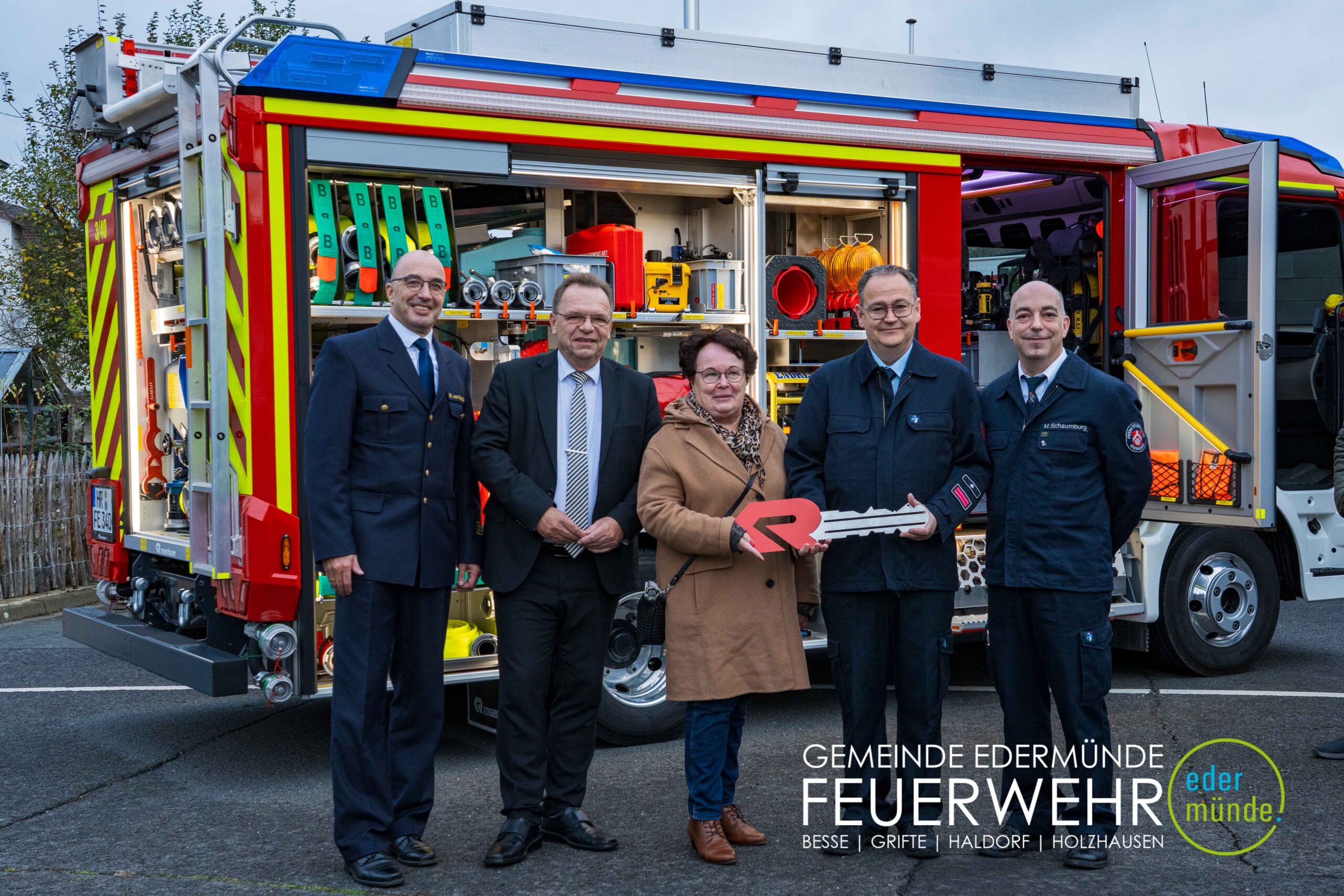 Wehrführer Robert Haberecht eröffnete den offiziellen Teil der Veranstaltung und bedankte sich besonders bei dem Beschaffungsteam für dessen Einsatz. Trotz Terminverzögerungen und weiter Anfahrten haben die Beteiligten mit viel Engagement dazu beigetragen, dass nun ein neues Fahrzeug für die Edermünder Feuerwehr im Ortsteil Haldorf bereitsteht.