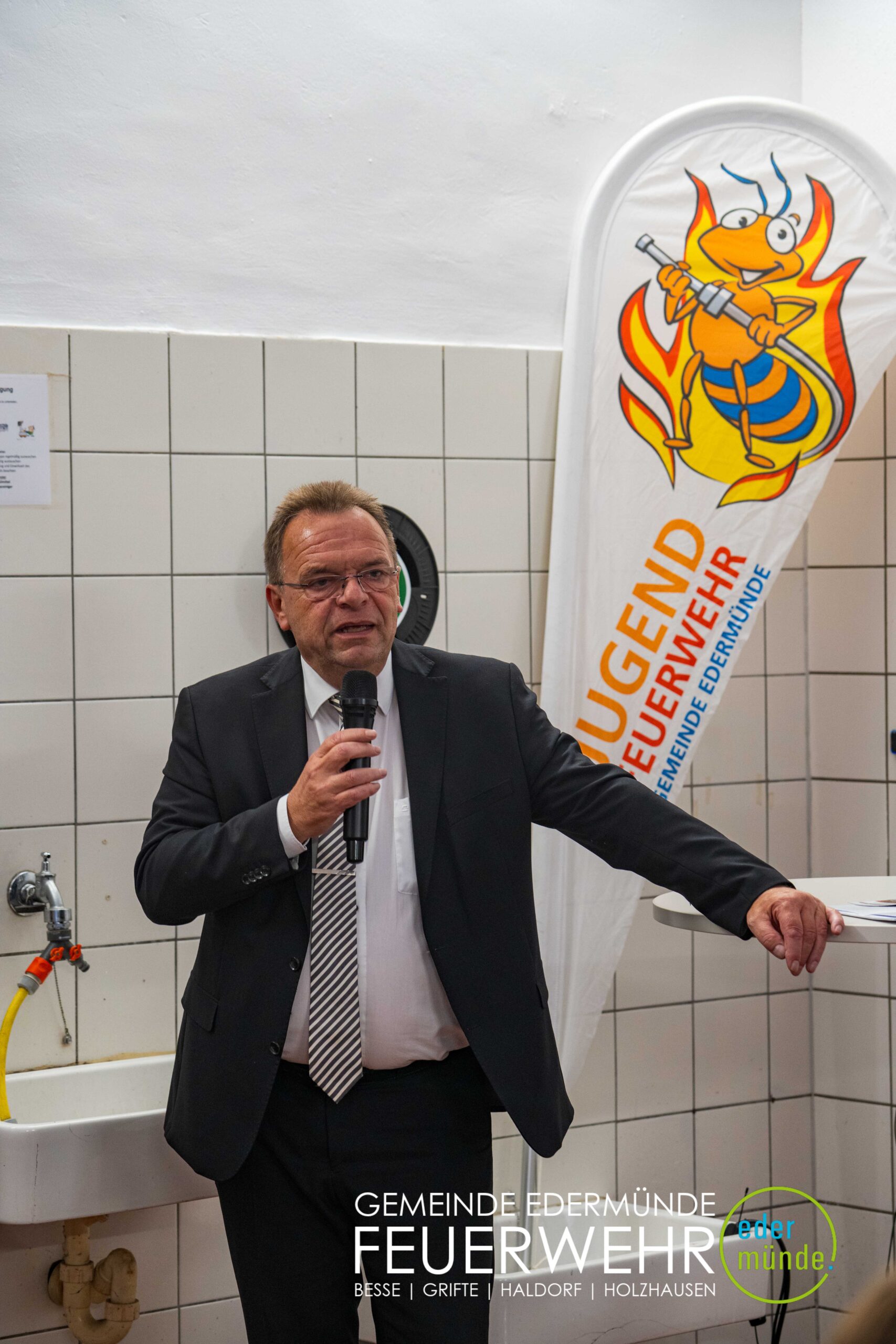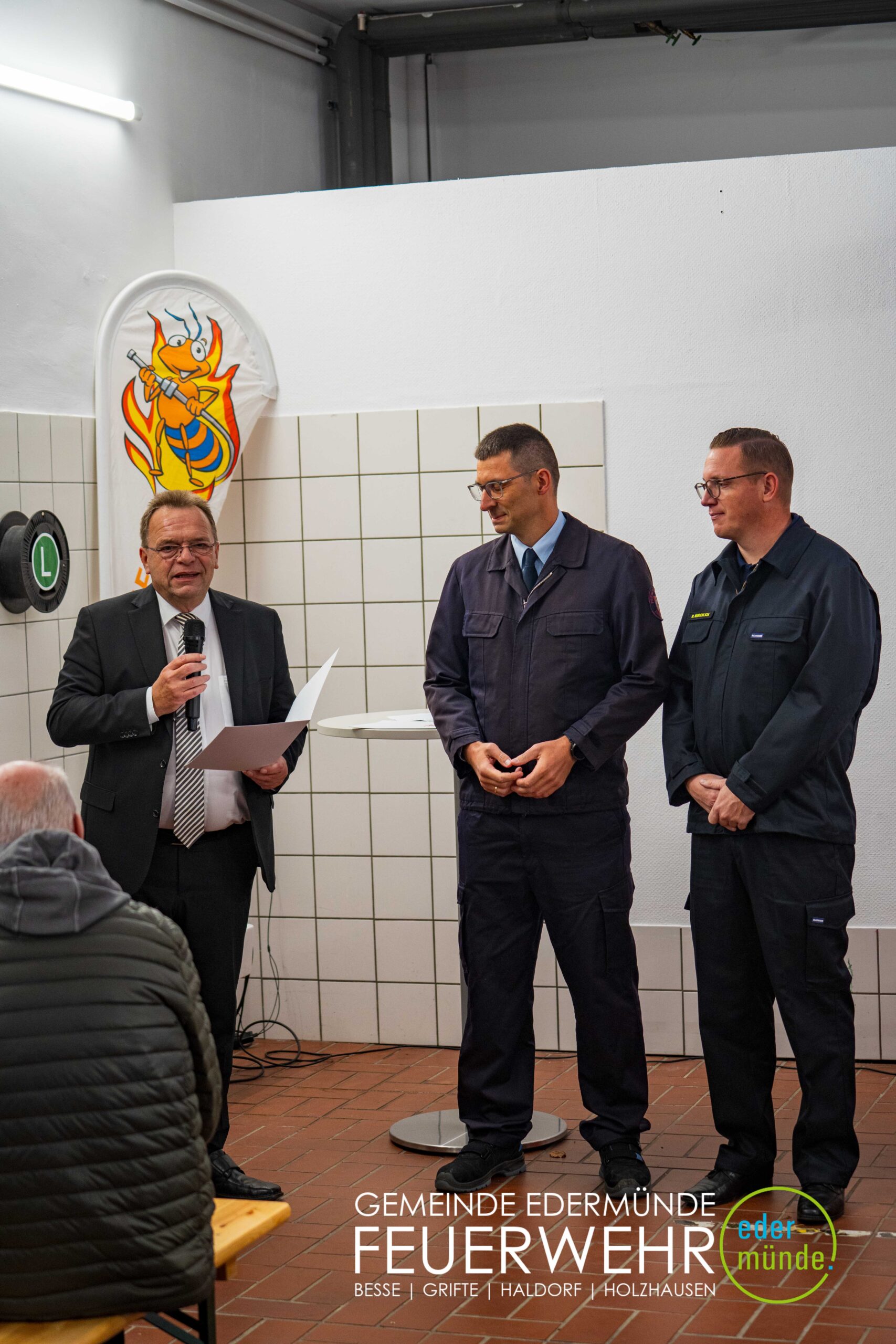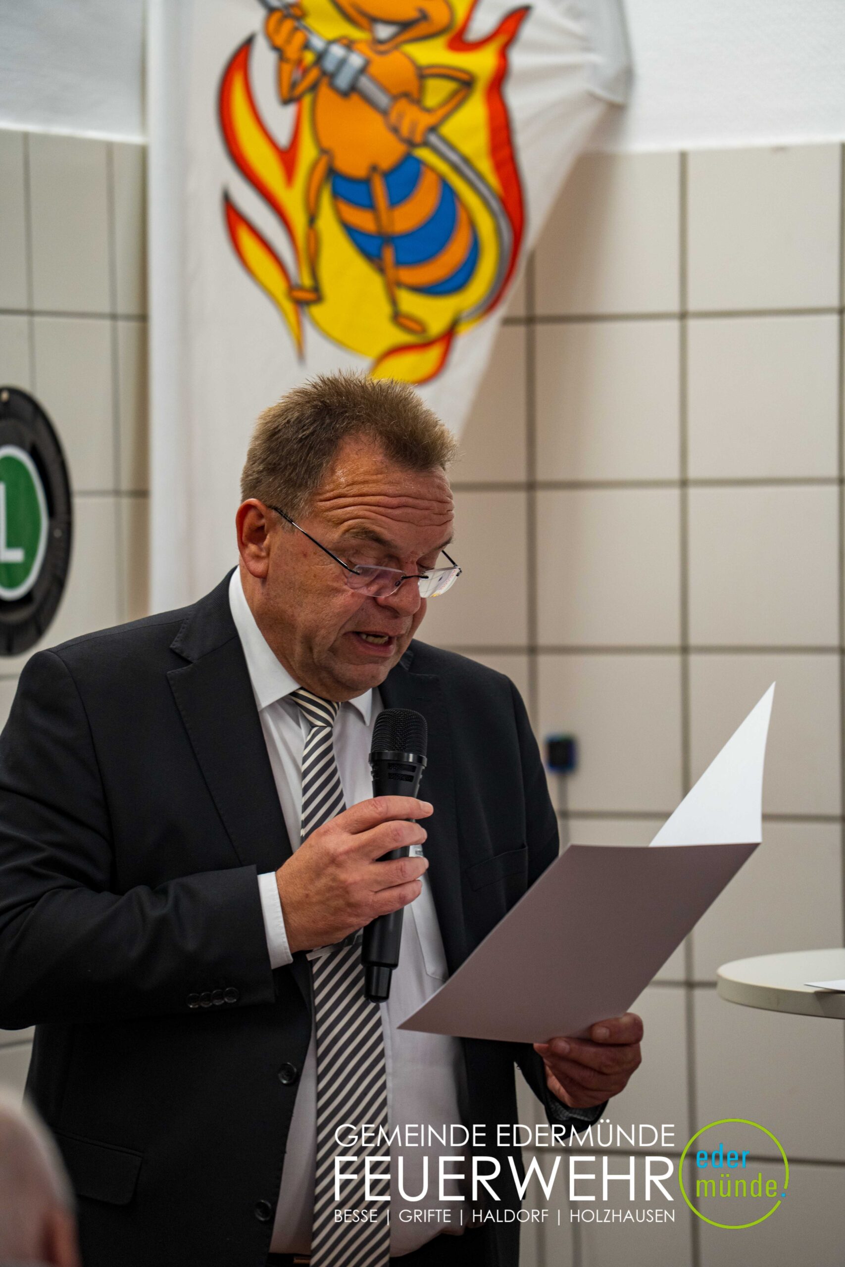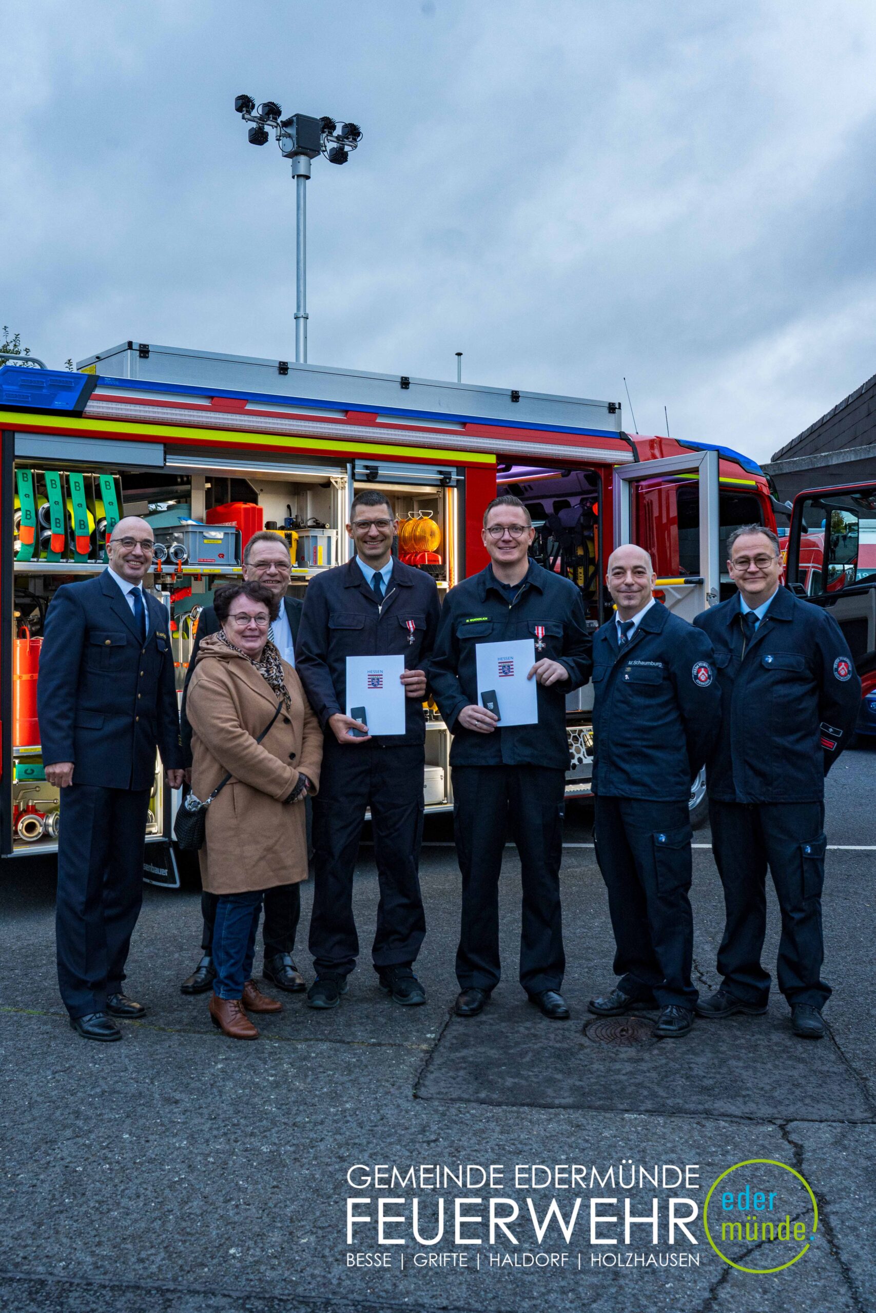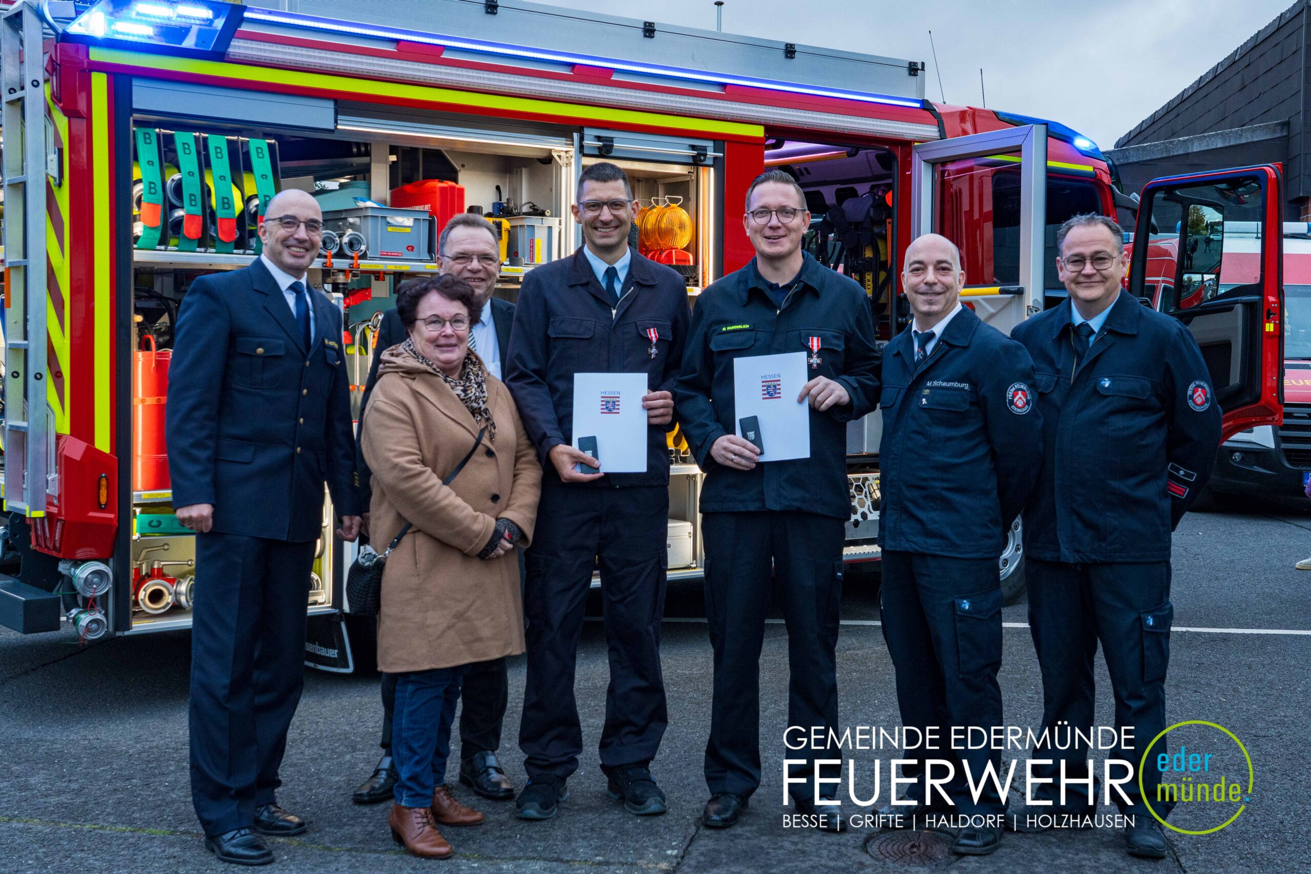 Wehrführer Robert Haberecht eröffnete den offiziellen Teil der Veranstaltung und bedankte sich besonders bei dem Beschaffungsteam für dessen Einsatz. Trotz Terminverzögerungen und weiter Anfahrten haben die Beteiligten mit viel Engagement dazu beigetragen, dass nun ein neues Fahrzeug für die Edermünder Feuerwehr im Ortsteil Haldorf bereitsteht.