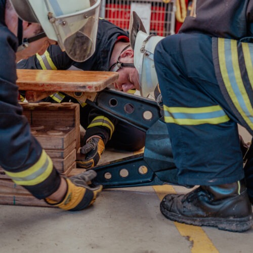 Nachdem sich die Gruppe einen ersten Überblick verschafft hatte, wurden Ideen ausgetauscht und Vor- und Nachteile abgewogen. Schnell stellte sich heraus, dass die Grundprinzipien beim Aufrichten eines Klapptisches denen beim Heben schwerer Lasten erstaunlich ähnlich sind. Schon bald war der Ehrgeiz geweckt – eine Bestzeit sollte her!
