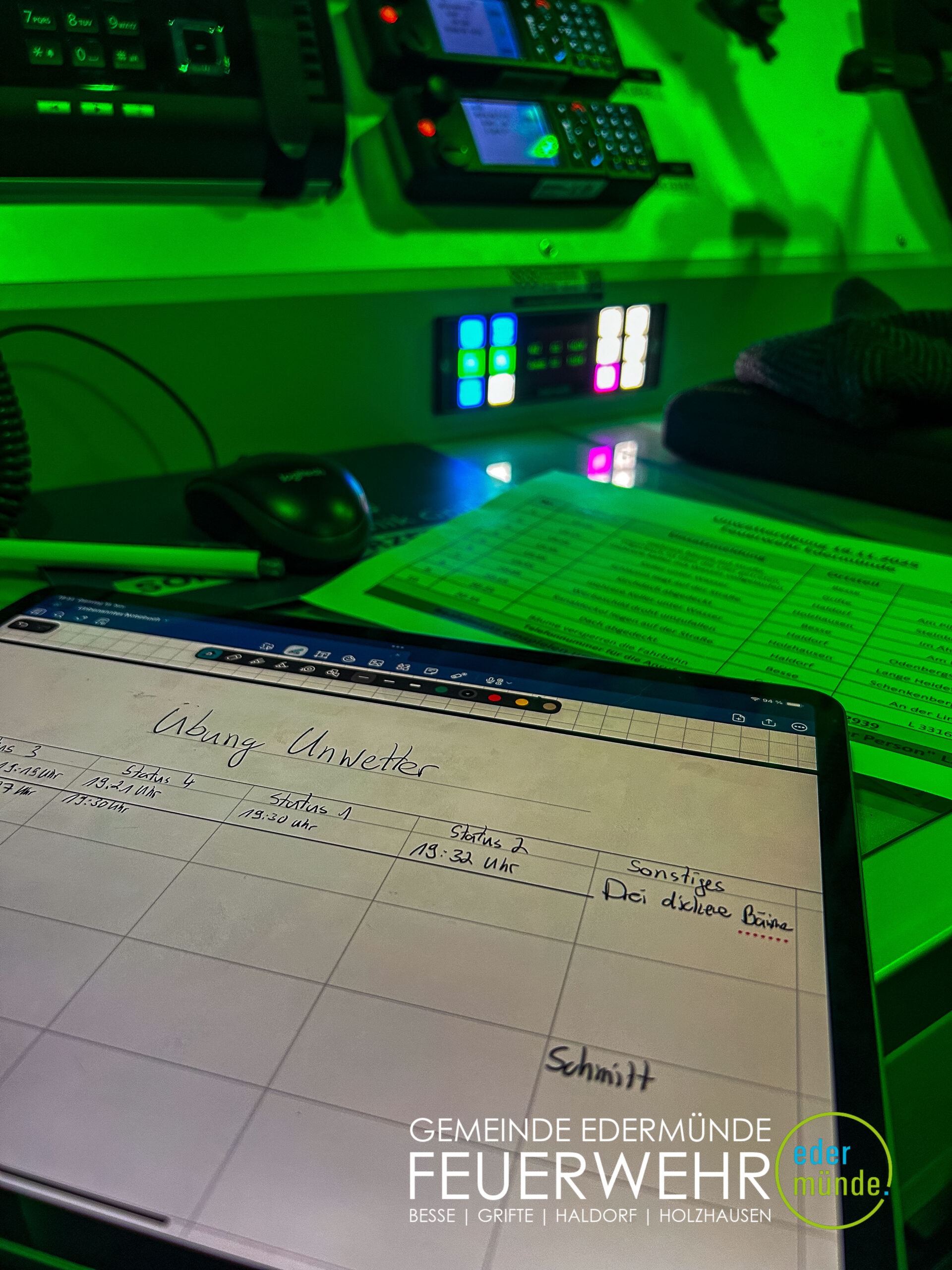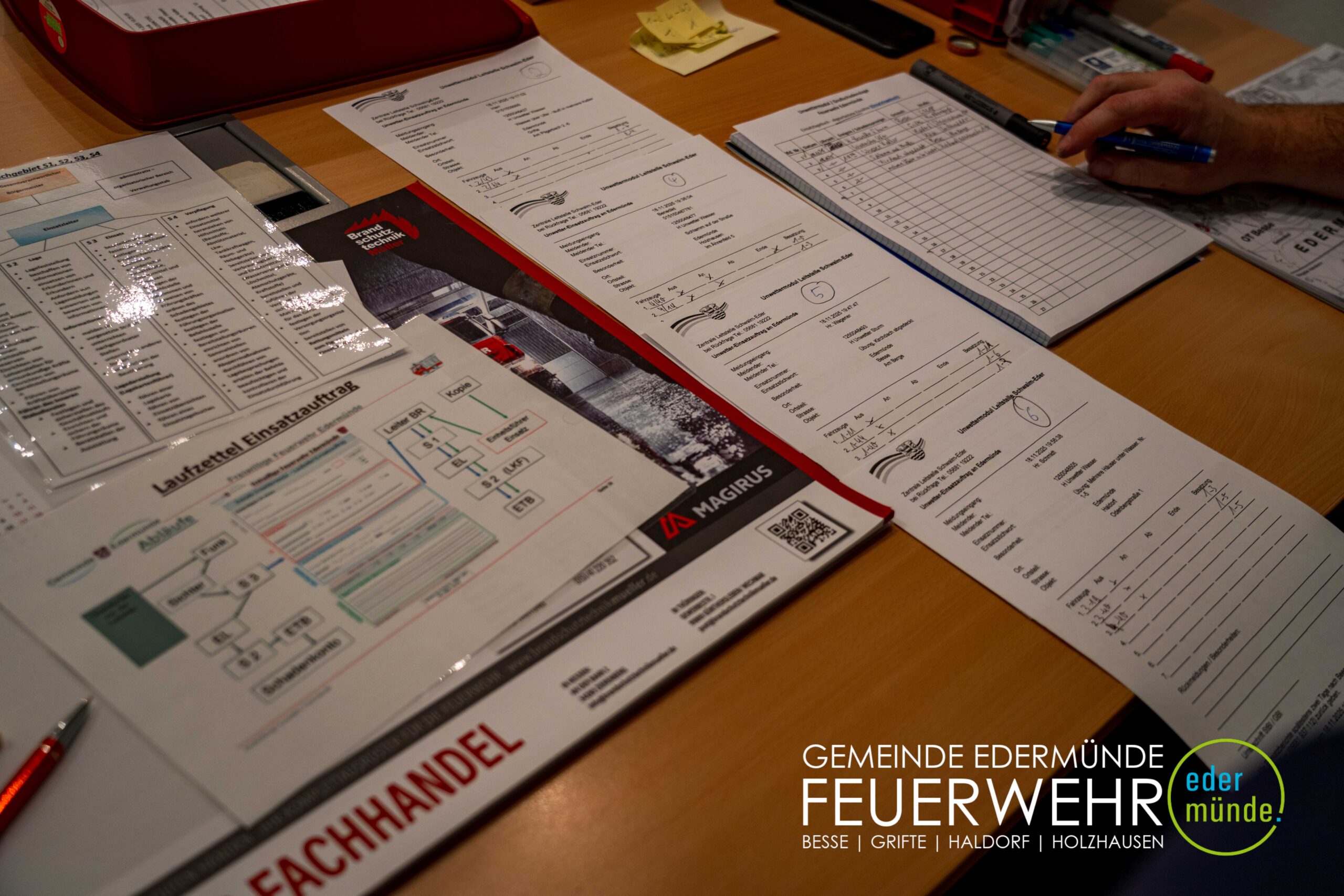 Auch wenn Edermünde in den letzten Jahren zumeist von Unwettern verschont geblieben ist, sind wir in Edermünde auf Unwettereinsätze vorbereitet. Neben viel technischem Equipment wie Nasssaugern, Tauchpumpen und vielem mehr ist aber auch die Organisation bei einer solchen Einsatzlage sehr wichtig.