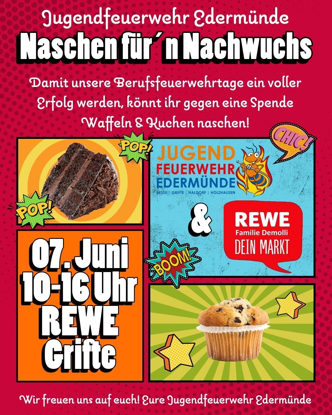 Kurz vorm langen Wochenende lädt die Jugendfeuerwehr zum Naschen für´n Nachwuchs zum Rewe in Grifte ein!