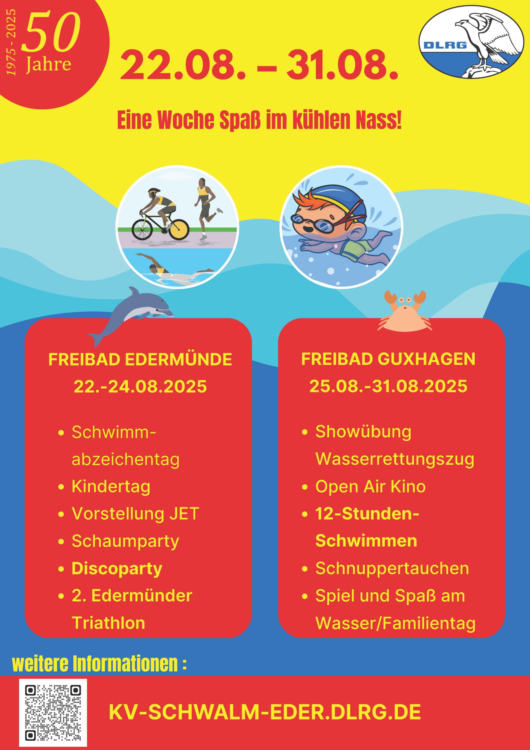 U.a. mit einem Schwimmbadfest und am Sonntag, den 24.8.2025 den 2. Edermünder Triathlon.